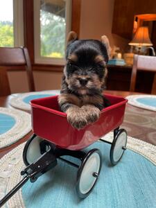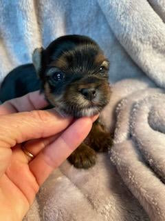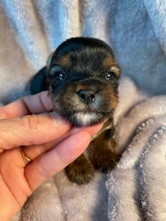 Say hello to Little Zoee, an adorable male pooch with AKC certification. This little guy is charting to be around 3.5lbs, making him the perfect cuddle buddy for any lap.